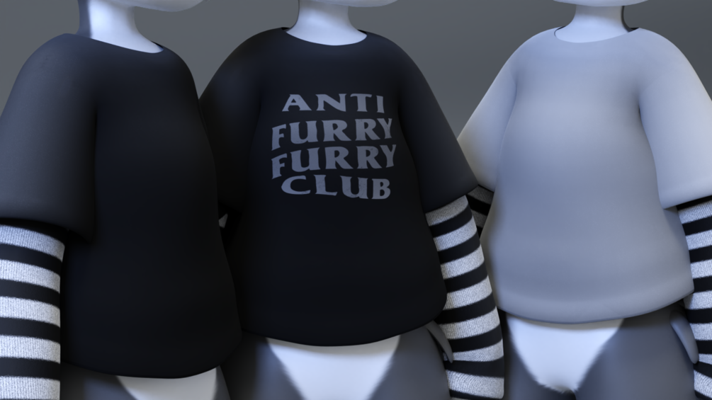 Custom shapekeys allow you to fit the model to Lexidoll's Lexichi, the Zoichi, Rantichi, and the Coppouchi using 1-click shapekey adjustments, and even more VRChat avatars using additional sliders included with the model. The two layers have their own materials, so you can customize it easily. Black, black with graphic, and white are included.