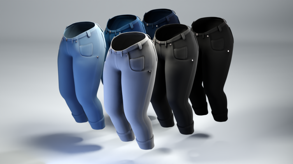 Concerned about getting the pants to fit well? No problem. I offer custom shapekey presets for fitting to Lexidoll's Lexichi, the Zoichi, Rantichi, and the Coppouchi, and even more VRChat avatars using additional sliders included with the model. Six colors are included: three shades of blue, and white/gray/black. Tailhole and cuffs removable. Additional shapekeys included to change the fit of the jeans.