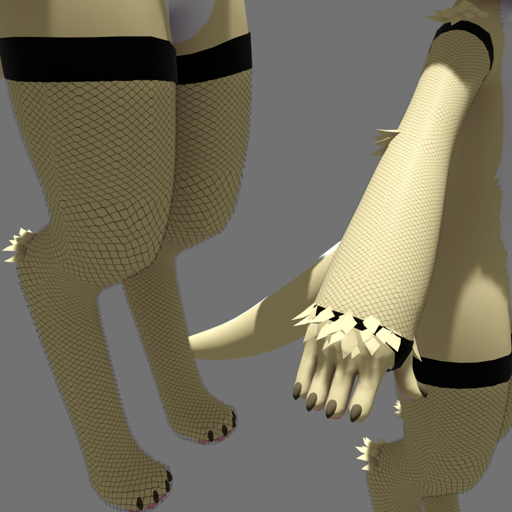 A set of fishnet stockings and armwarmers for your Zoichi Nanachi. Shapekeys are included for body morphs.